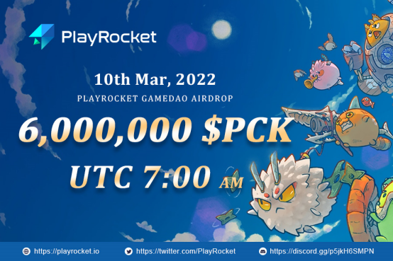 Bên cạnh đó, Play Rocket đang xây dựng một cộng đồng những người có suy nghĩ tiên tiến bao gồm người sáng tạo, người ủng hộ và nó cũng chính thức thành lập GameDAO. Lần này, GameDAO và MetaKingdom đã đạt được một thỏa thuận hợp tác để airdrop tổng cộng 6 triệu PCK(PlayCoin Key) tokens tới những người chơi Axie hàng đầu như là một phần thưởng cho sự cống hiến của họ. Người chơi có thể nhận được phần thưởng sau khi dữ liệu trực tuyến của họ được thu thập và xác minh. Tất cả những người chơi đều có cơ hội tham gia vào chiến dịch lần này chỉ cần họ tuân theo những quy tắc sau: